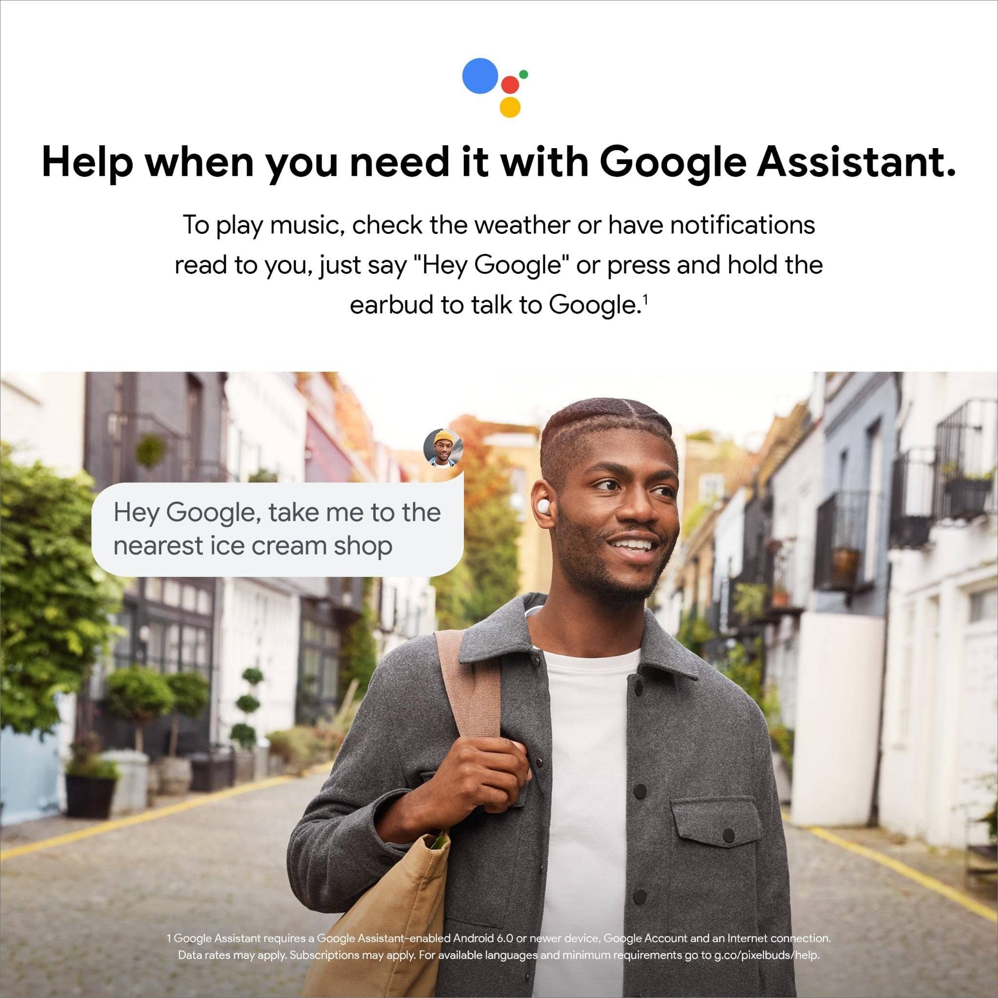 To play music, check the weather or have notifications read to you, just say “Hey Google,” or press and hold the earbud to talk to Google.