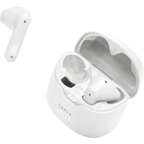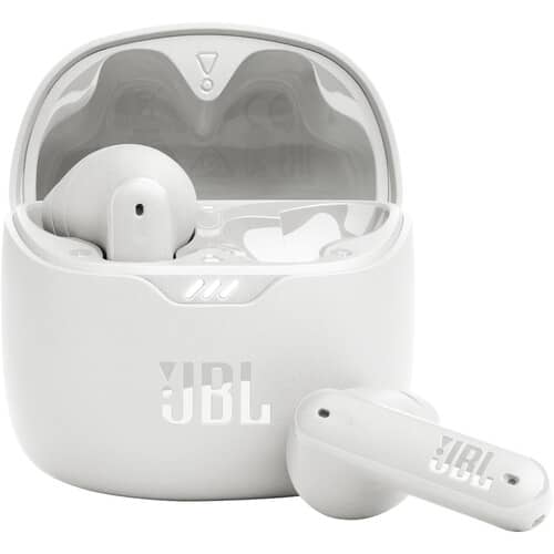 Tackle your day one song at a time with the JBL Tune Flex, a pair of white true wireless earbuds with active noise cancellation and up to 32 hours of JBL Pure Bass Sound. Never be deterred by inclement weather, as the earbuds are IPX4 rated for water and sweat resistance. You can enjoy your music or podcast anytime, anywhere. With a simple touch, you can to manage and enjoy perfect calls anywhere, without ambient noises. The Active Noise Cancelling (ANC) and Smart Ambient technology allow you to choose whether you want to tune out the world or engage with your surroundings. The free JBL Headphones App lets you personalize your entire listening experience. The Flex Tone earbuds include a charging case, USB-C charging cable, one open eartip, and three sizes of sealing eartips (S, M, L).